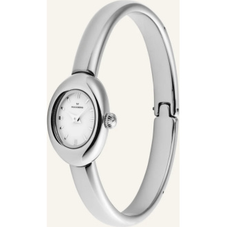 Belle fra Mockberg er den perfekte balansen mellom smykke og klokke. Med sitt elegante armebånd og ovale urkasse fungerer den like mye som statement-smykke som armbåndsur.