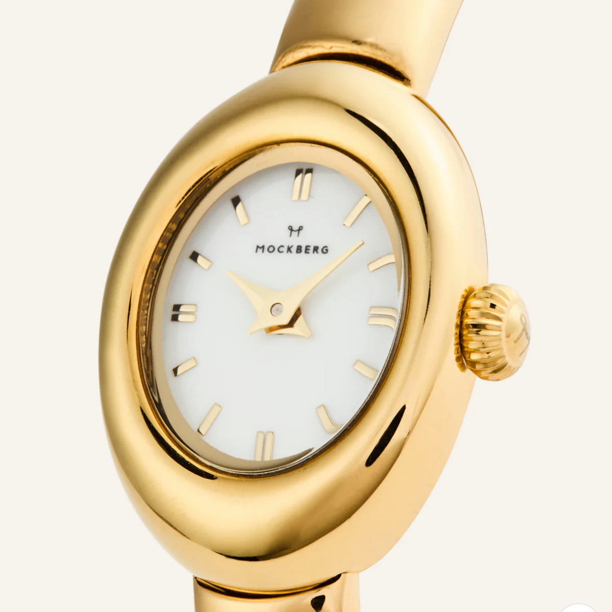 Belle fra Mockberg er den perfekte balansen mellom smykke og klokke. Med sitt elegante armebånd og ovale urkasse fungerer den like mye som statement-smykke som armbåndsur.