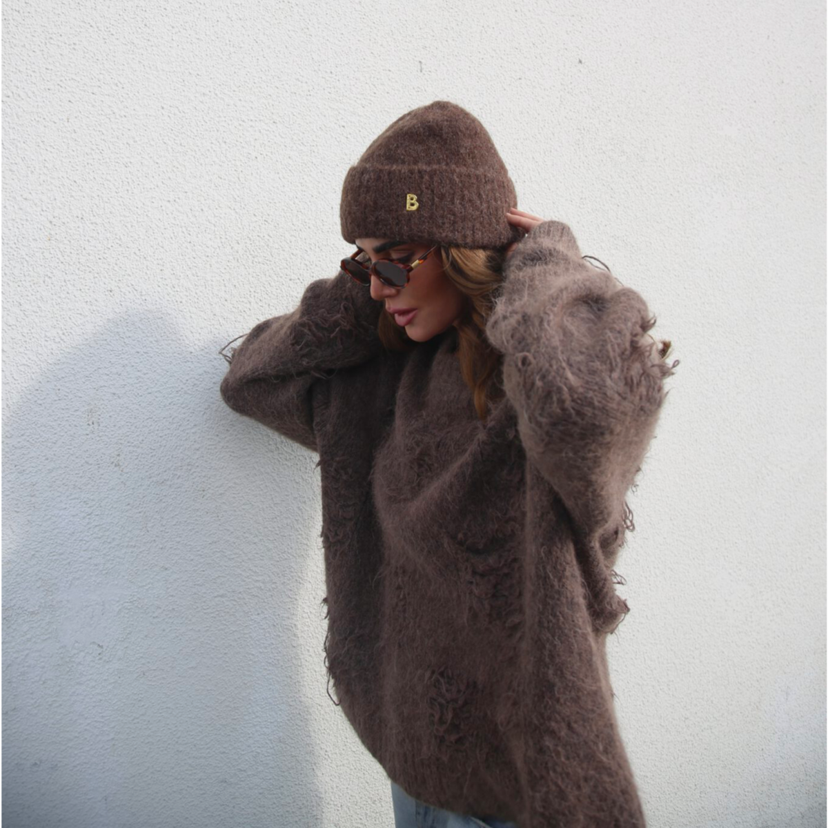 Denne tidløse luen passer like godt til hverdags som til mere pyntede antrekk og er et stilrent tillskudd til vintergarderoben din. Detaljen som løfter alt….en gullbelagt By B-logo, som setter et eksklusivt preg på looken.