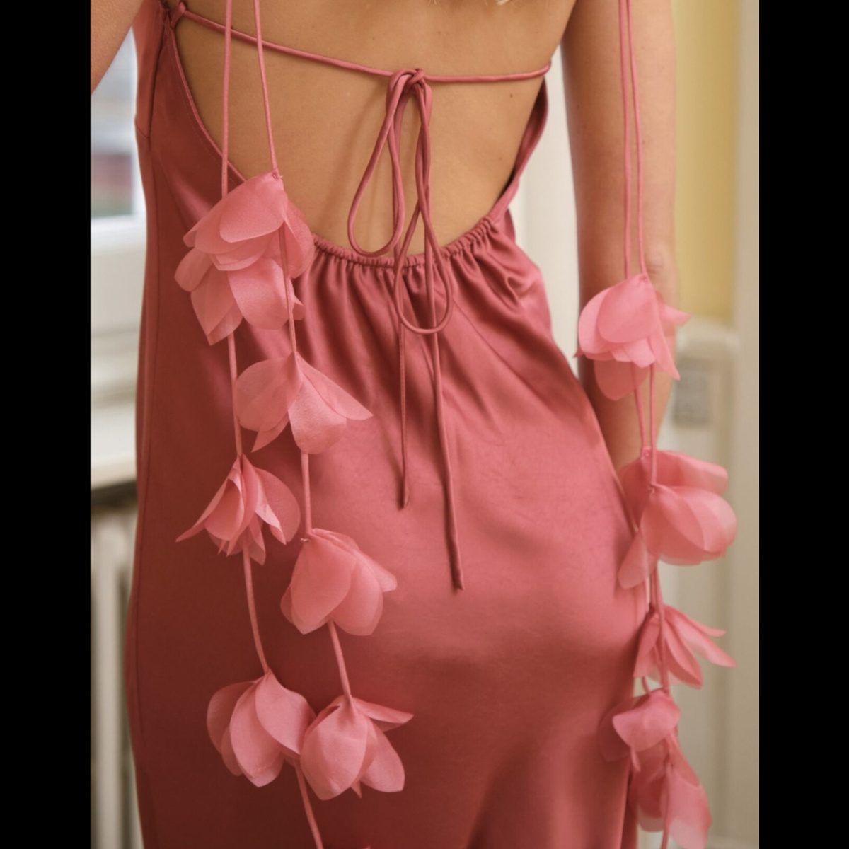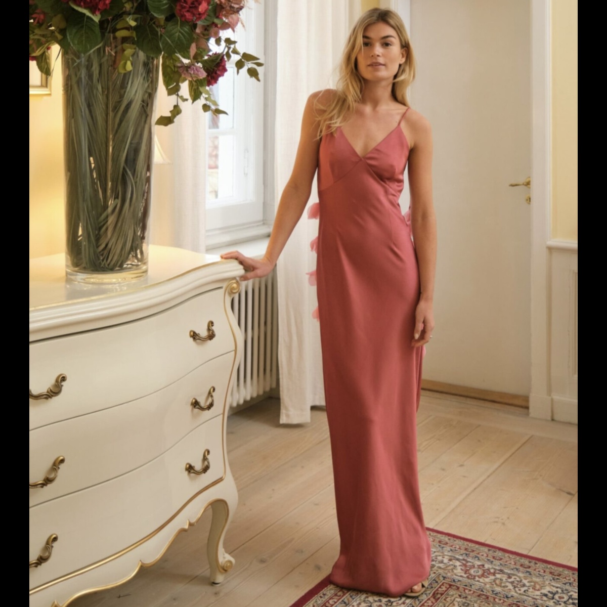 Kjole i den vakreste farge i tung crepe-sateng med en glatt og skinnende overflate.