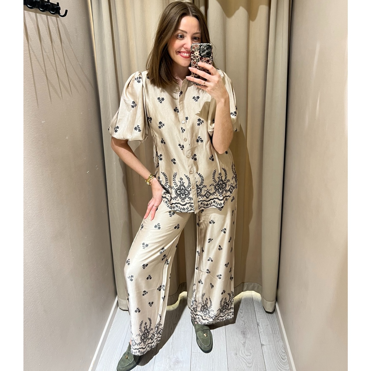 Sateng bluse i duse rolige farger.