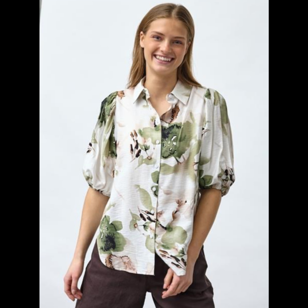 Lekker bluse med kort erm. Knapper i front. Normal i størrelsen.
