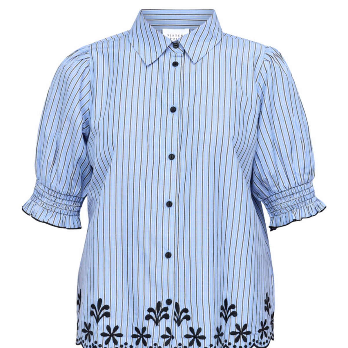 Isola er en kortermet blue med pufferm og krave.