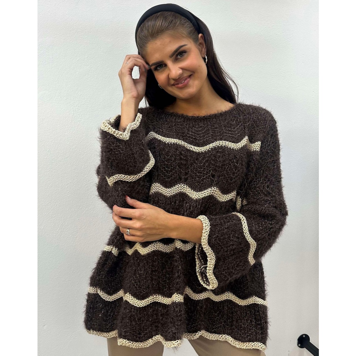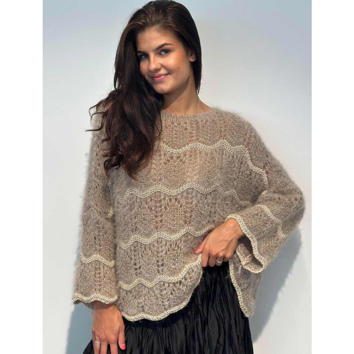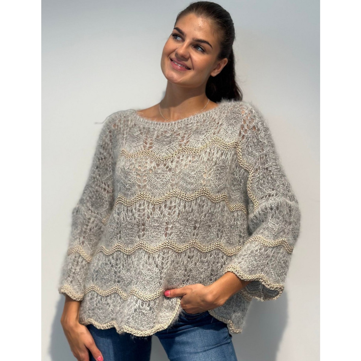 Elegant og behagelig på samme tid. De lekre gulldetaljene, åpent strikkemønster og trekvart erm gir det lille ekstra-en favoritt i garderoben hele sesongen.