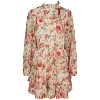 Kort Neo noir kjole med det vakreste print, strikk bak og lang erm.