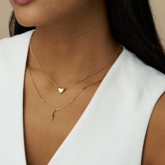Smeltet hjertesmykk på et lekkert kjede belagt med 18K gull.