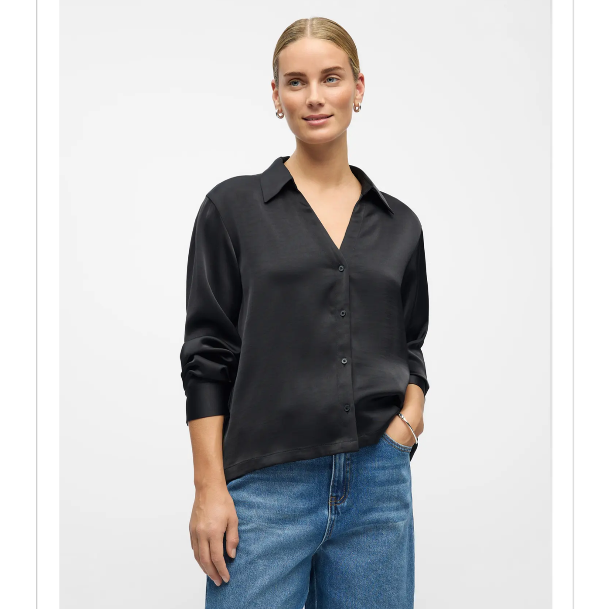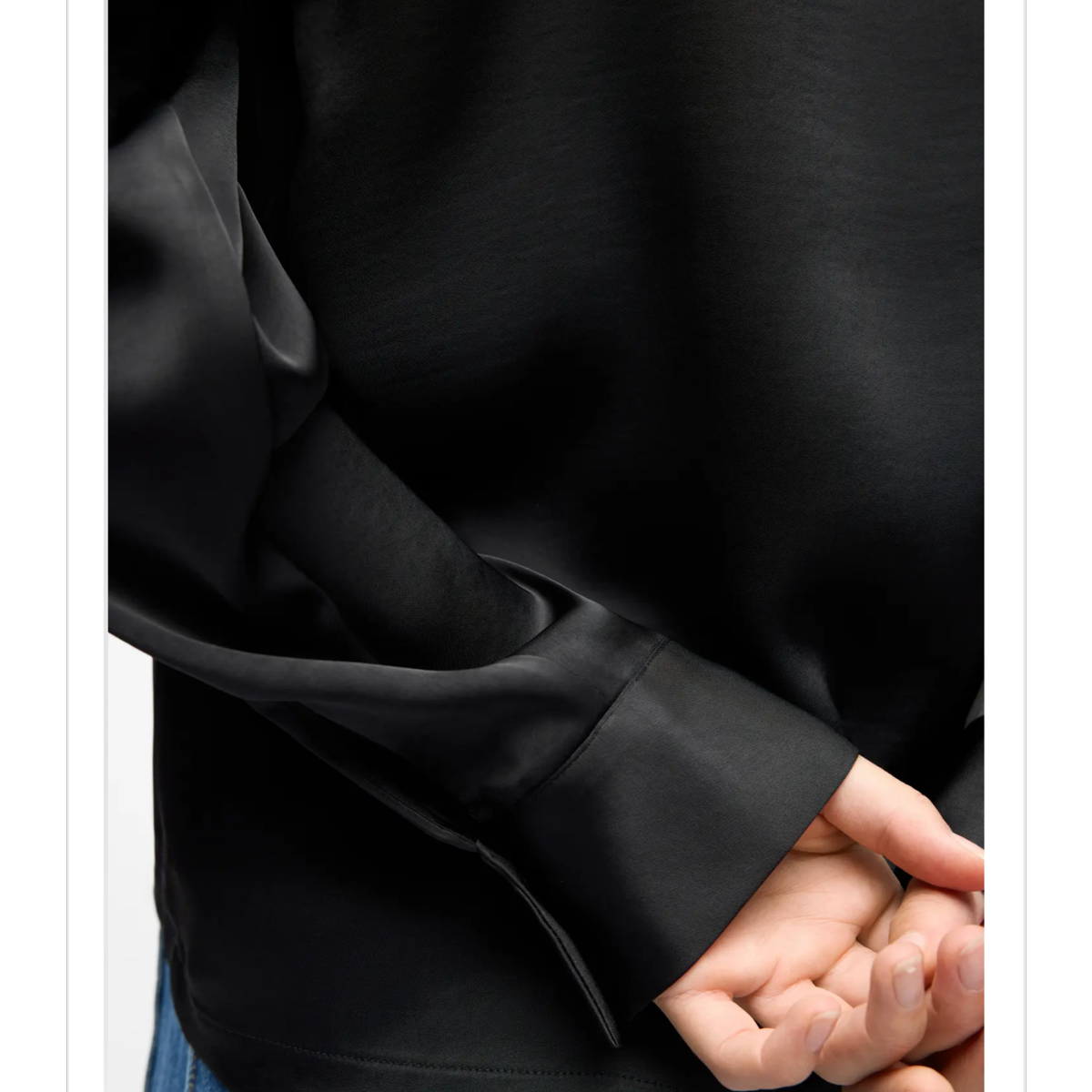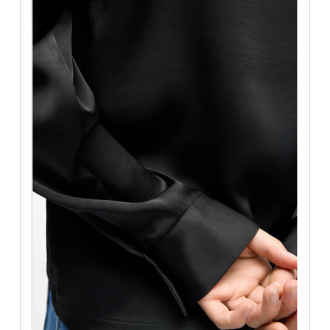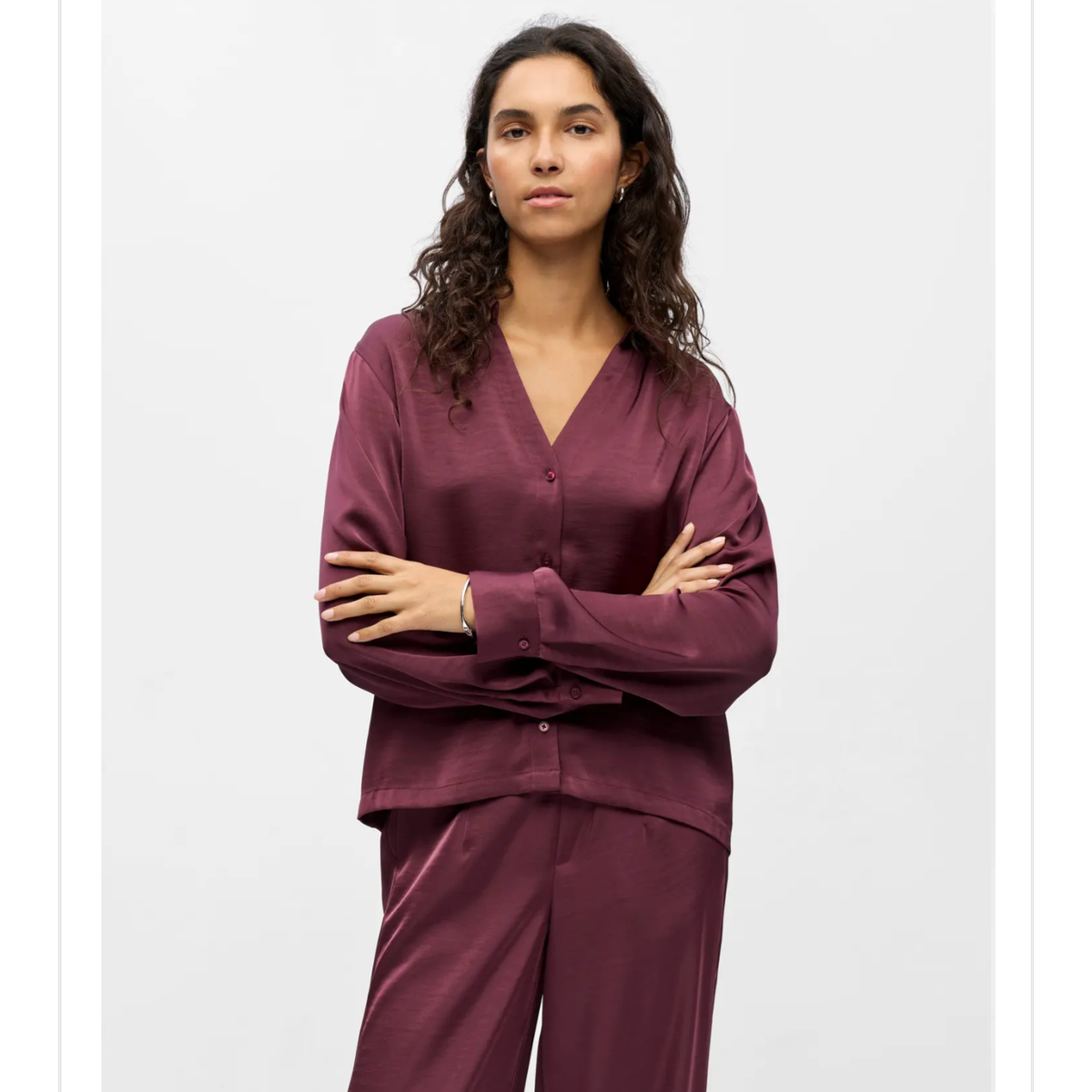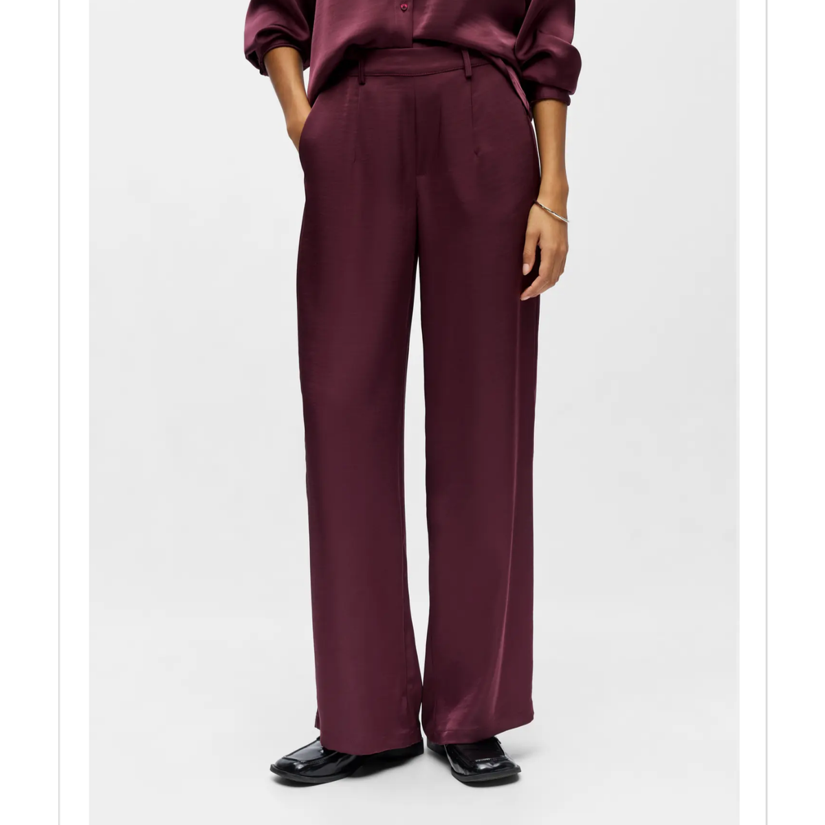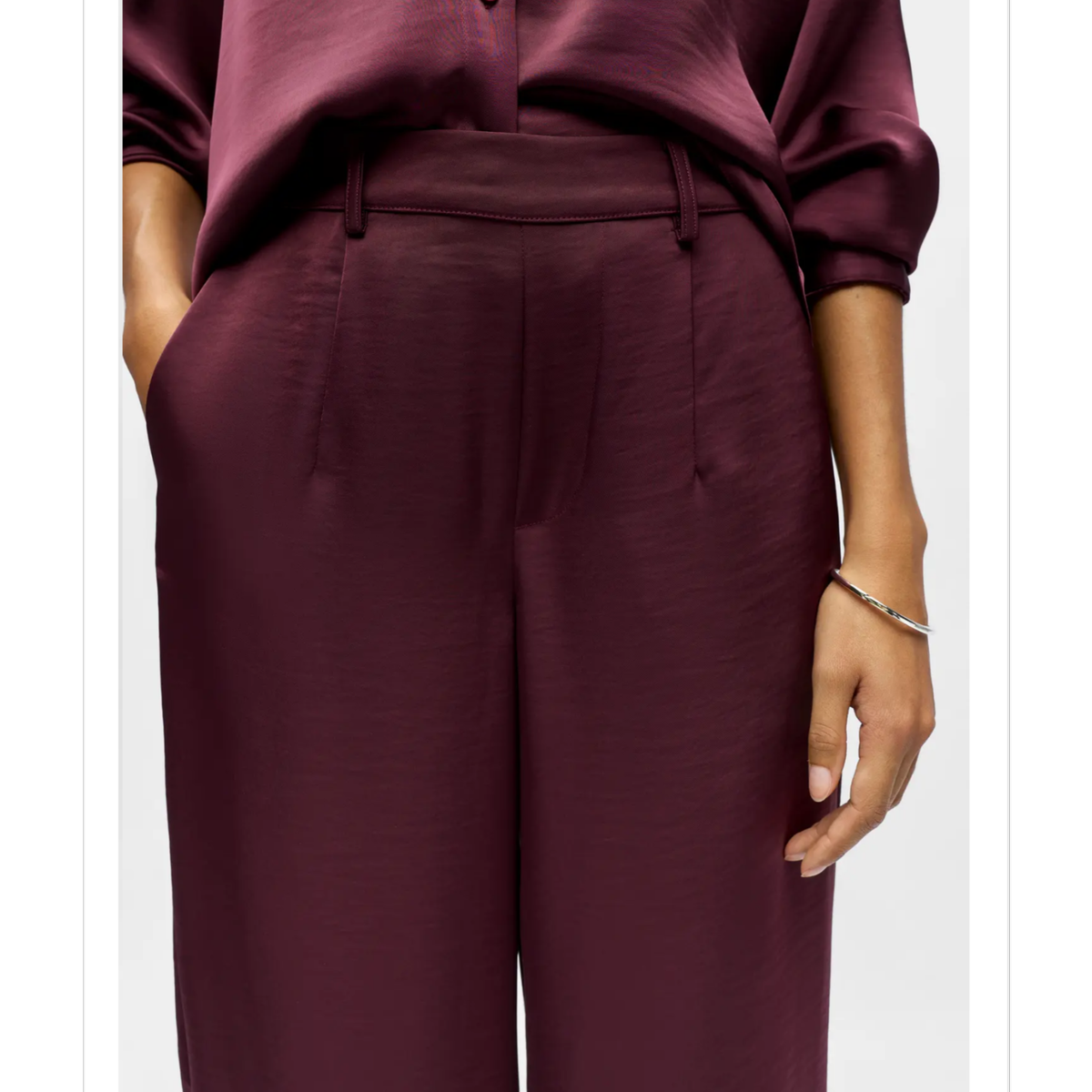 Satengbukse med strikk i livet bak, og lommer i siden.