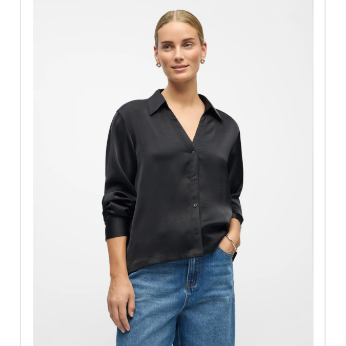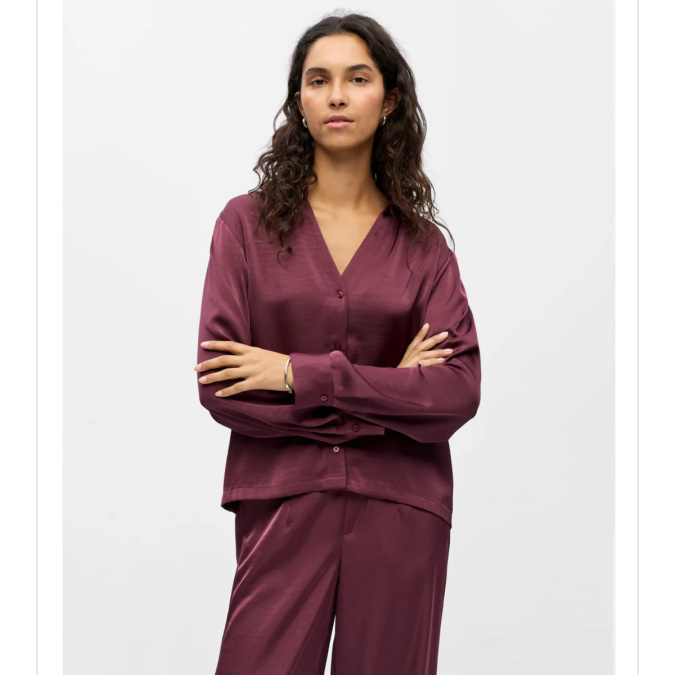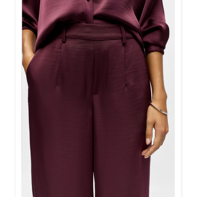 Satengbukse med strikk i livet bak, og lommer i siden.