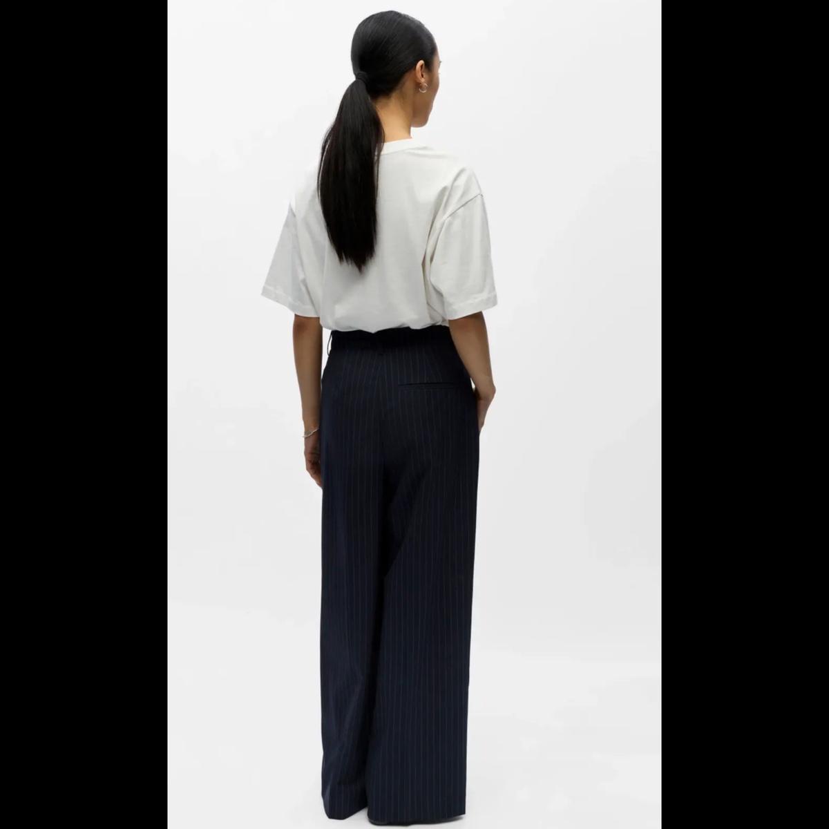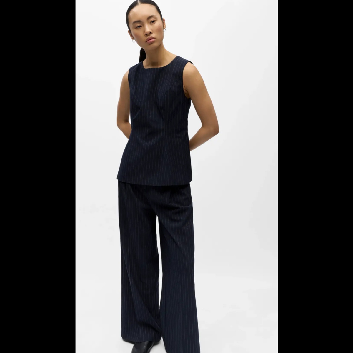 Peplum topp med pinstripe, splitt i siden og elastan.