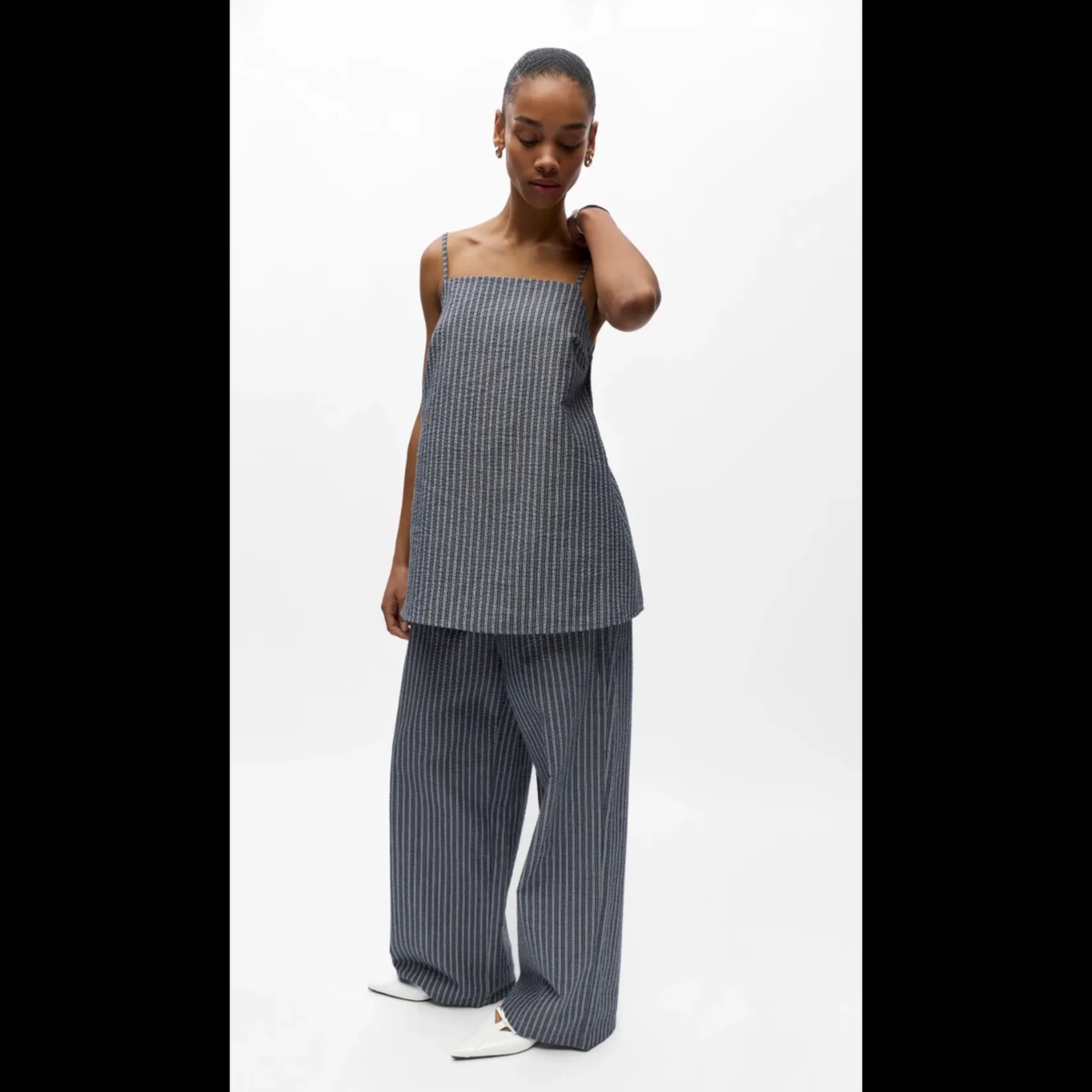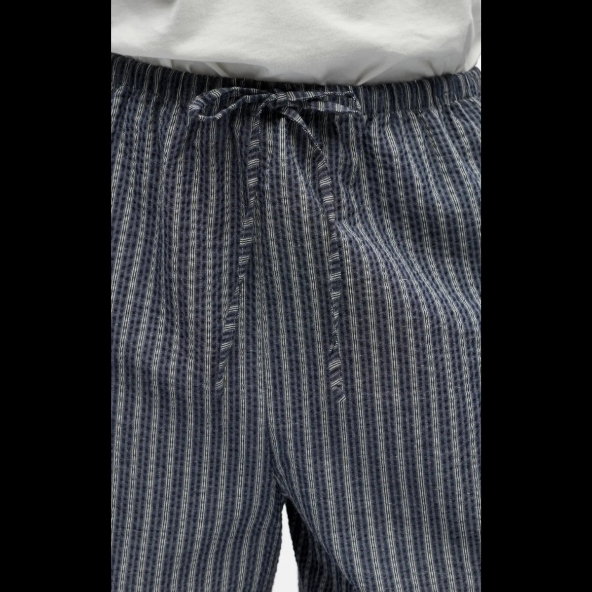 Bukse myk i myk bomullsmiks med strikk i livet og løse ben.