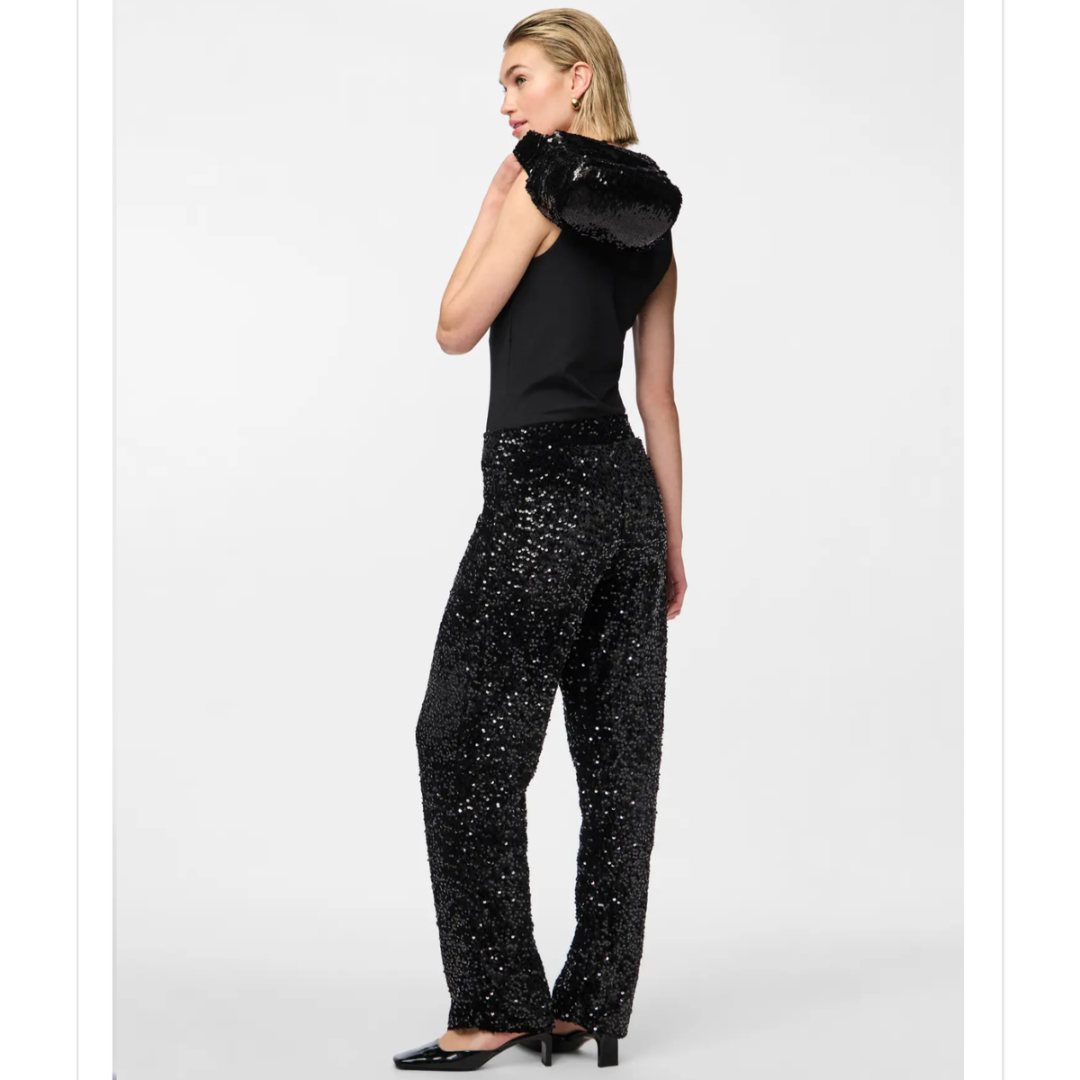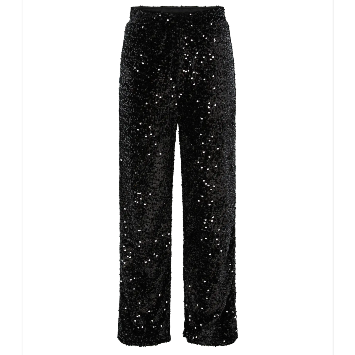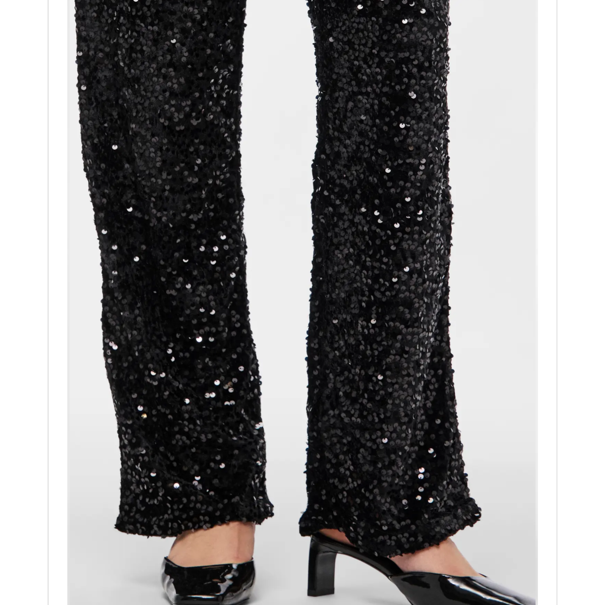 Lekre paljettbukser med rette ben, strikk i livet. Normal i størrelsen.
