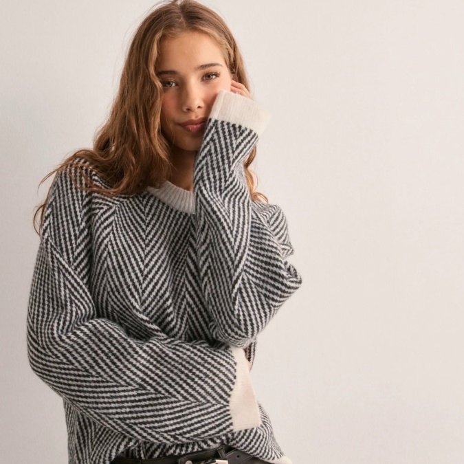 Composition: 55% Polyester – Recycled, 24% Polyester, 13% Acrylic, 5% Wool, 3% Elastane