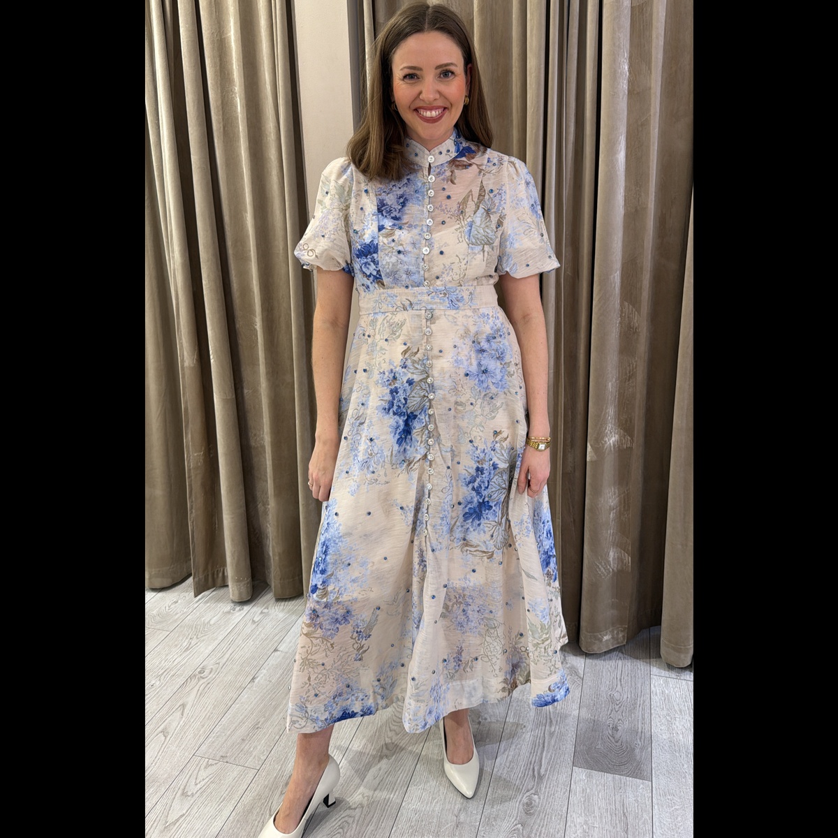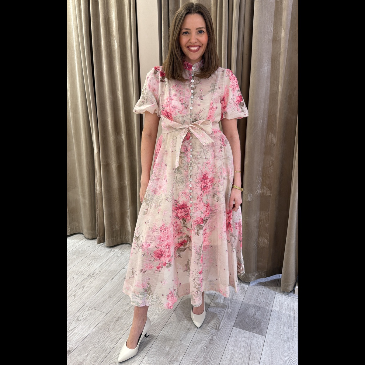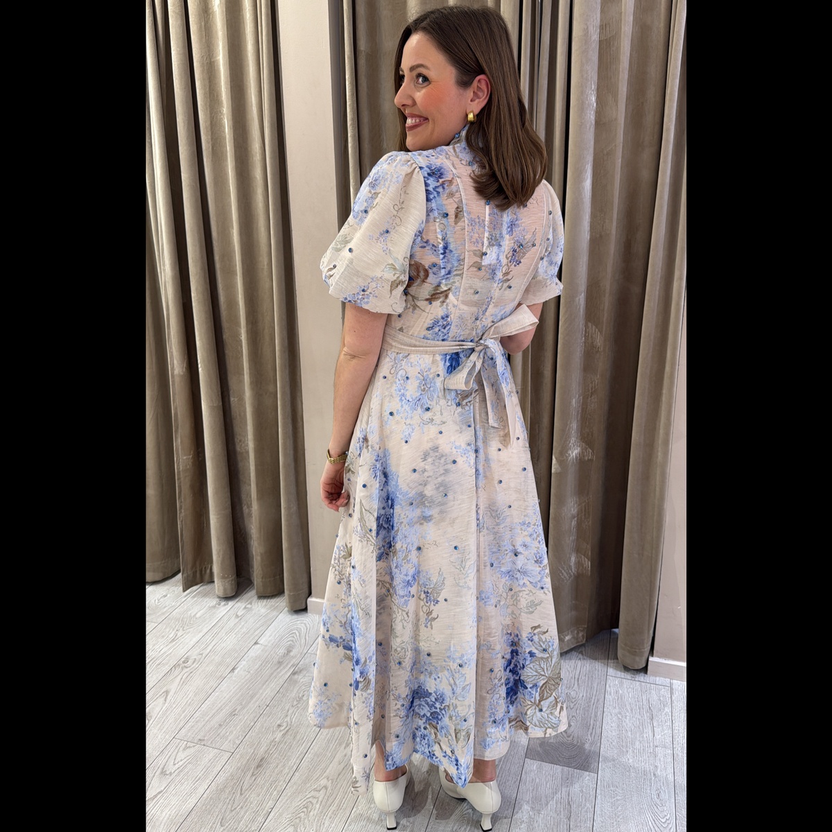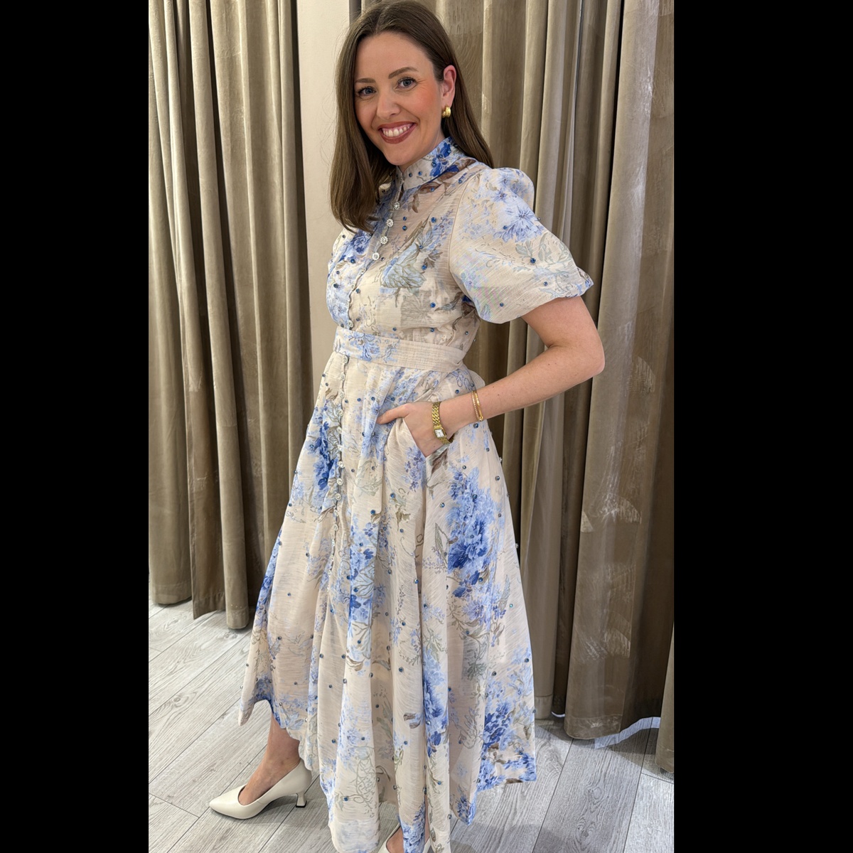 Kjolen sitter nydelig på,og passer til vårens hyggelige begivenheter.