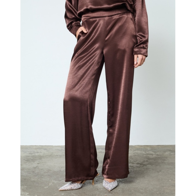Satenbukse med lommer i siden og strikk bak i ryggen.