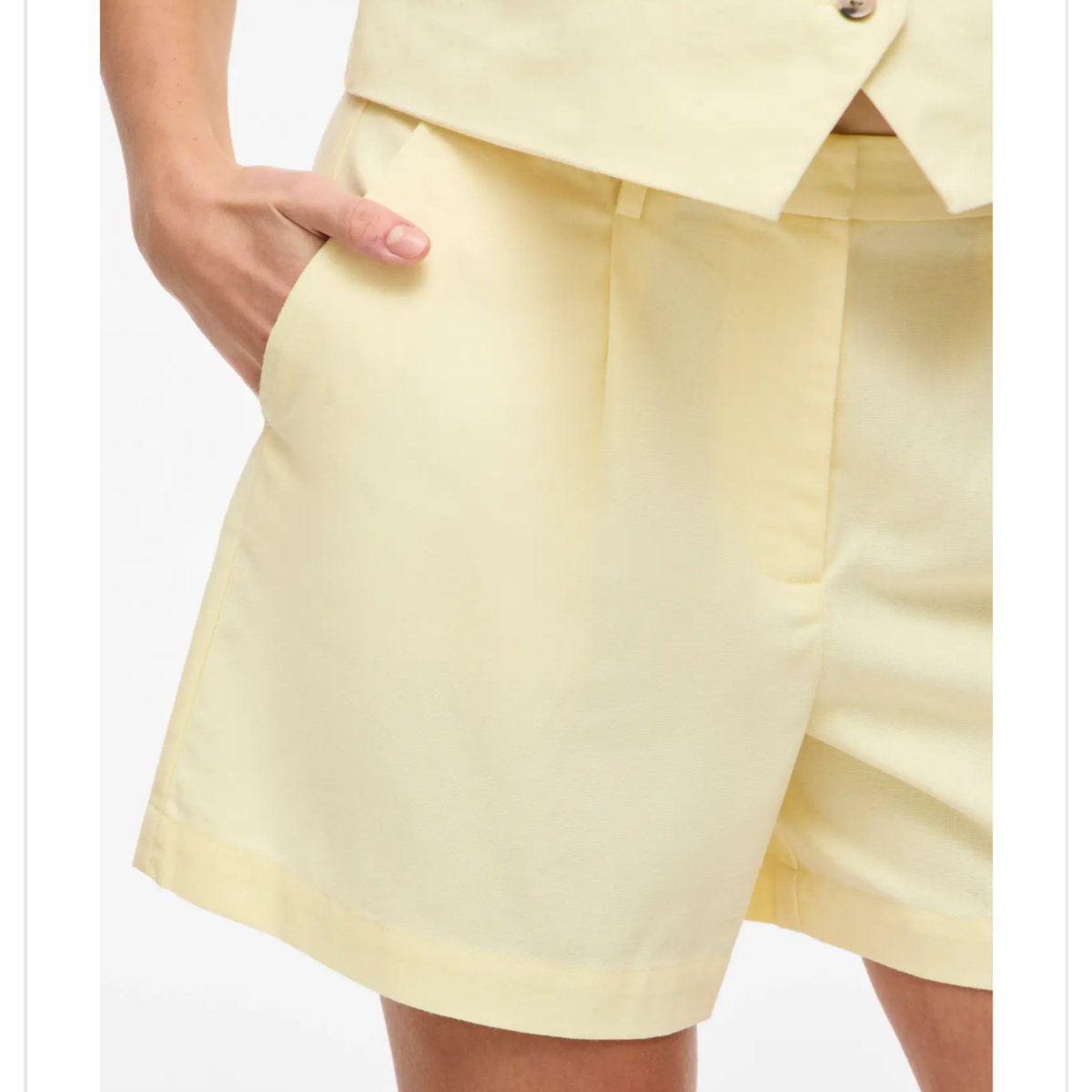 Shorts i vårens fineste gulfarge, beltehemper og lommer i siden.