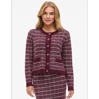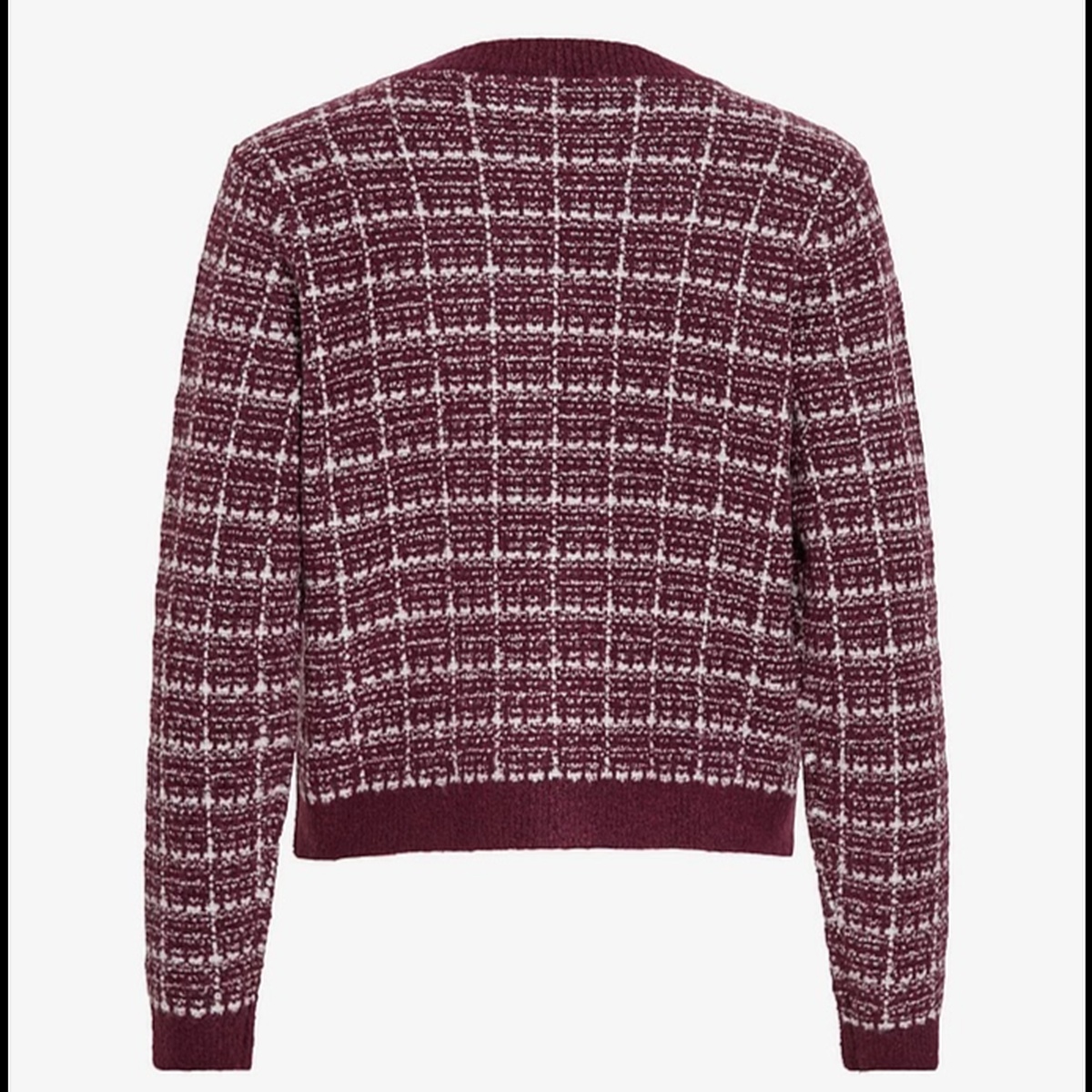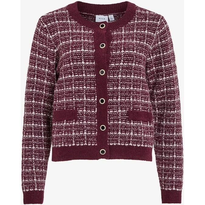 Strikkejakke med lommer og pynteknapper i de flotteste høstfarger.