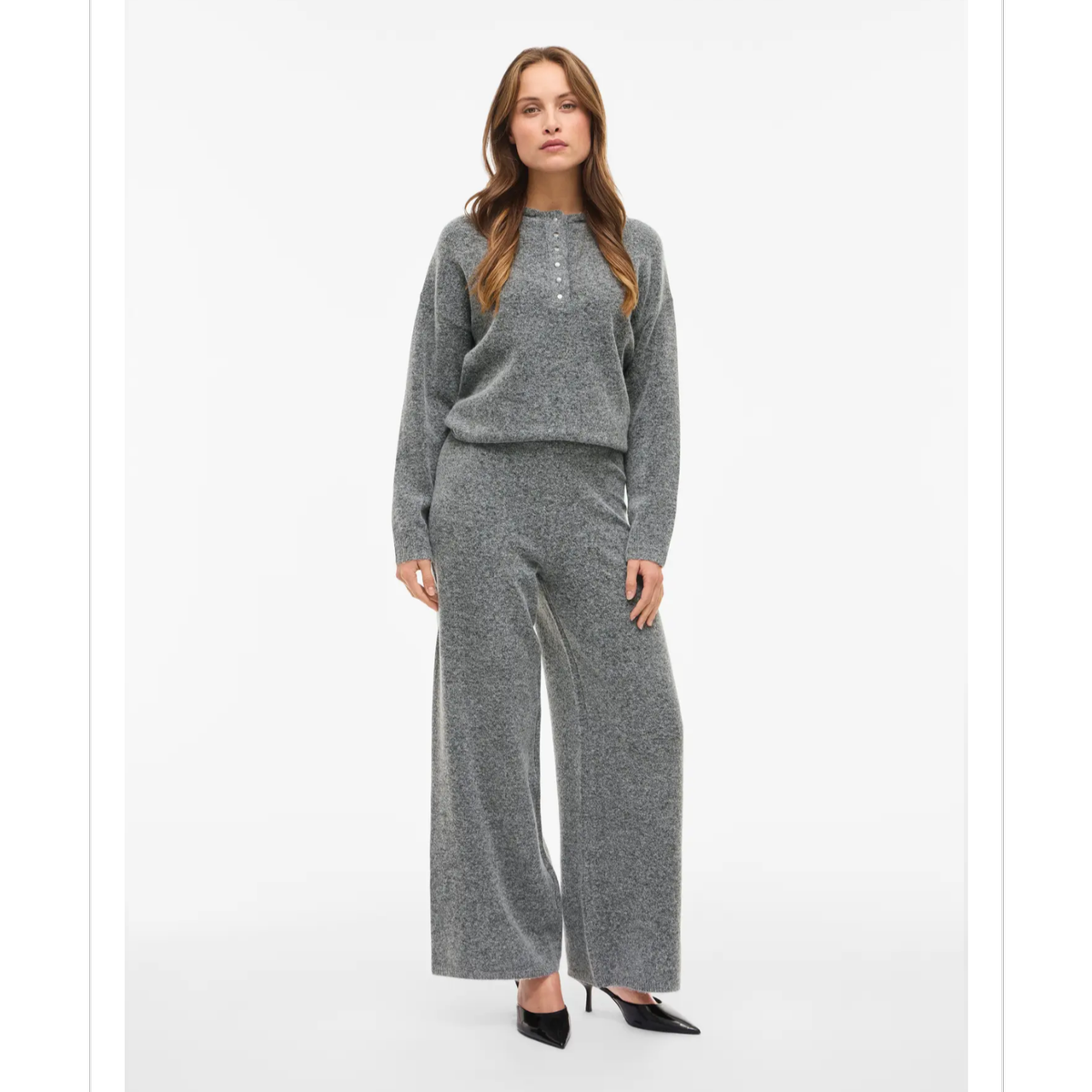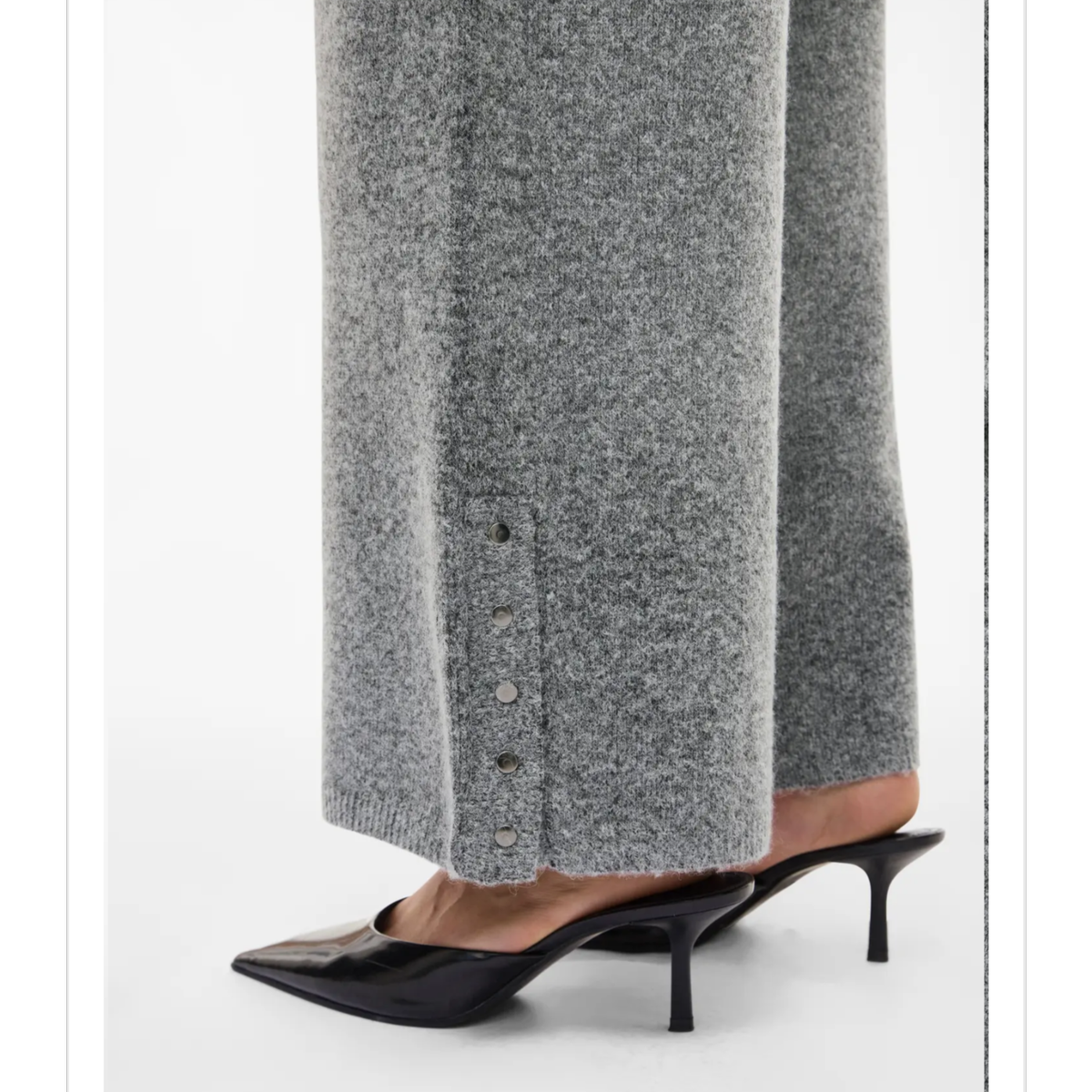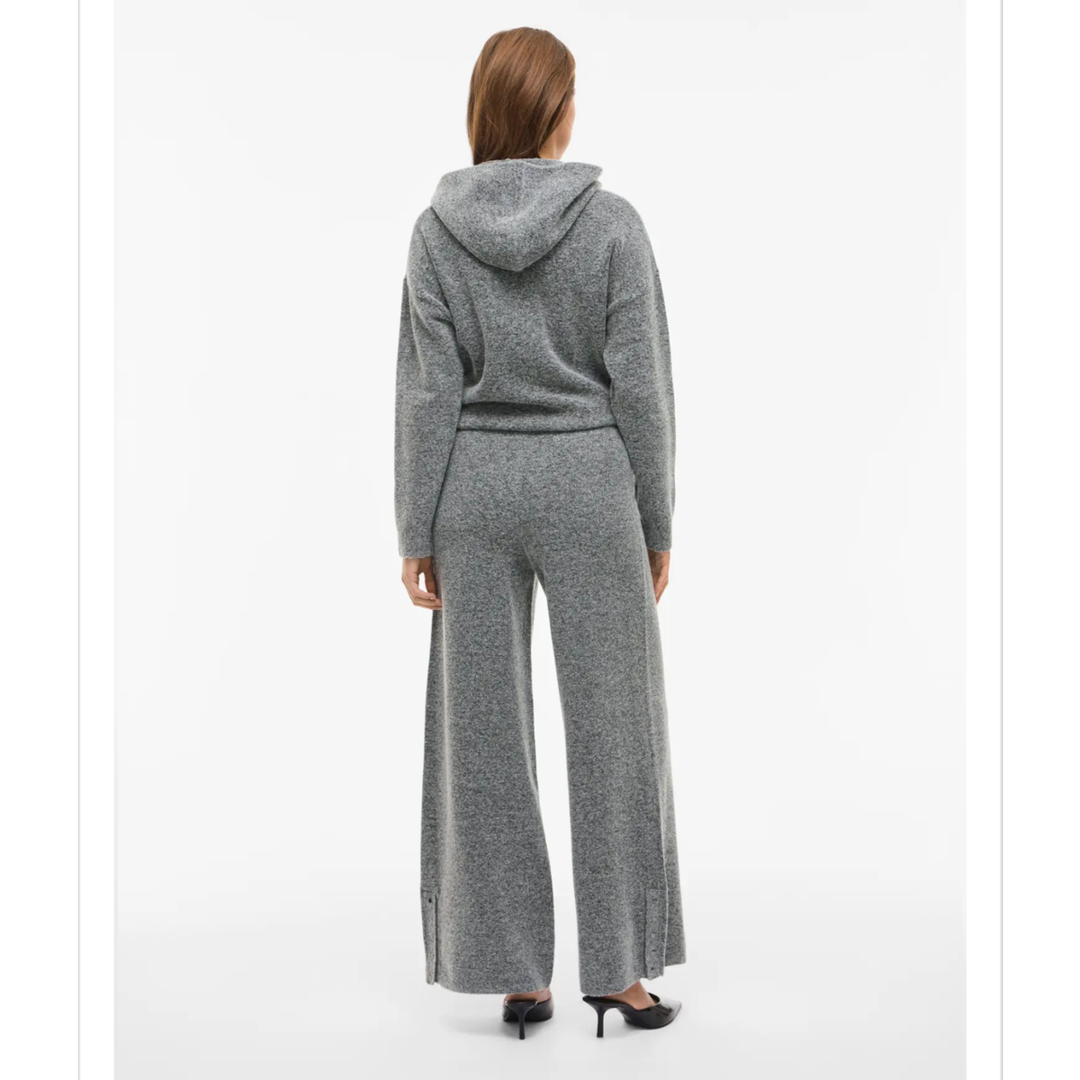 Genser har hette og knapper i front og bukser med løse ben og knapper nederst.