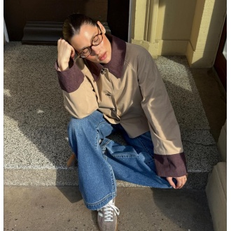 Vårjakke med tøffe corddetaljer på krave og ermer.