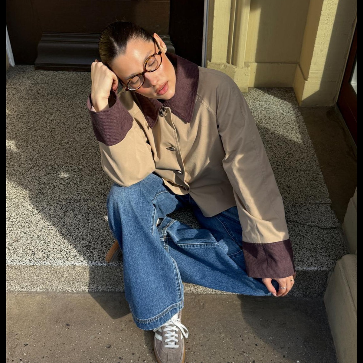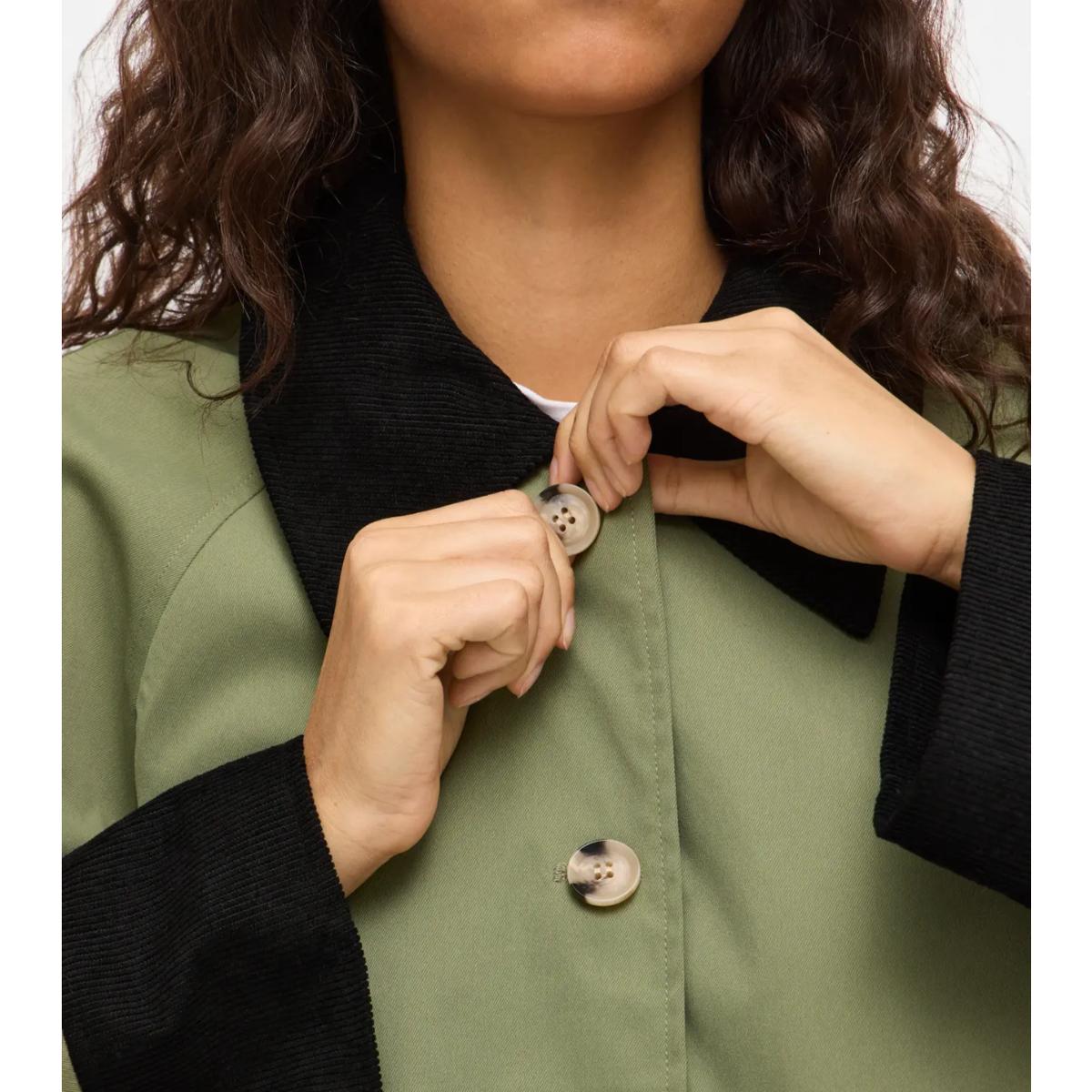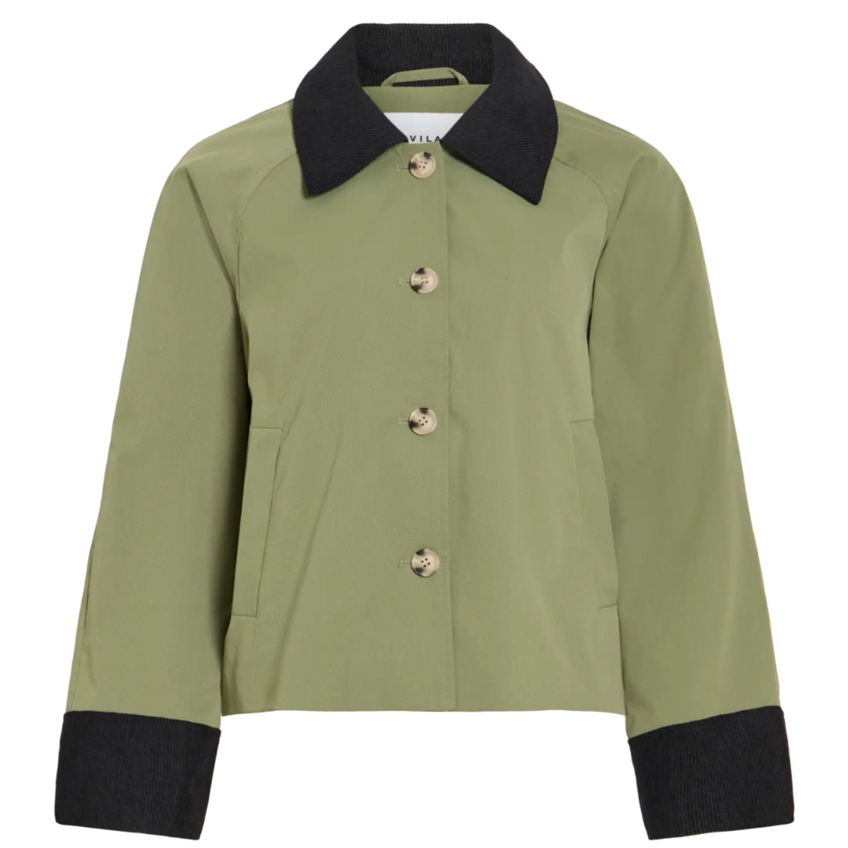 Vårjakke med tøffe corddetaljer på krave og ermer.