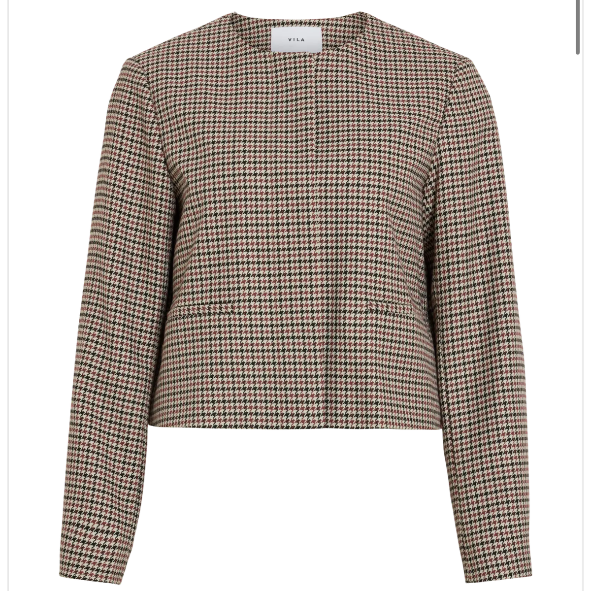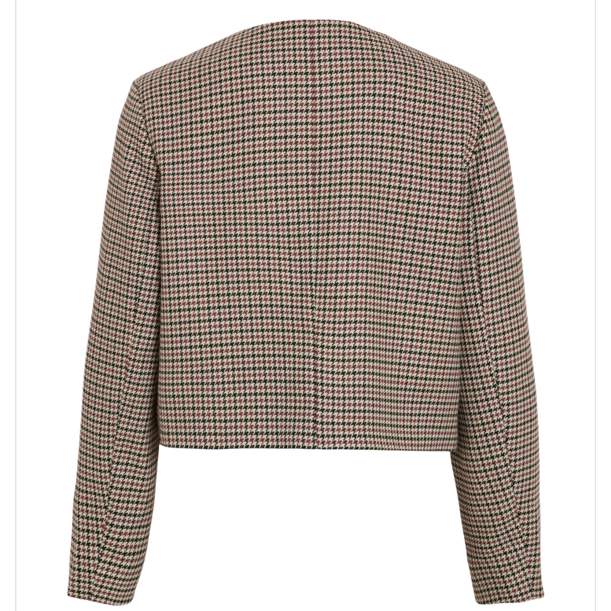 Delikat og enkel jakke med små ruter i burgunder/sort/creme.