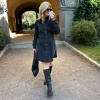 Lekre detaljer på ermene, knapper i front og bredt belte i livet.