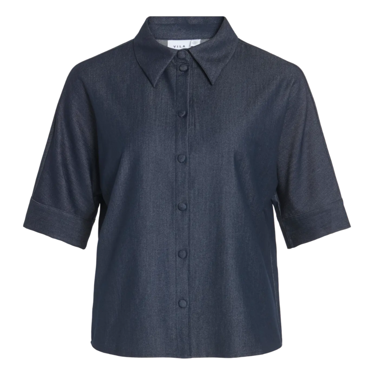Tøff skjorte i denim look, knapper foran og skjortekrave.