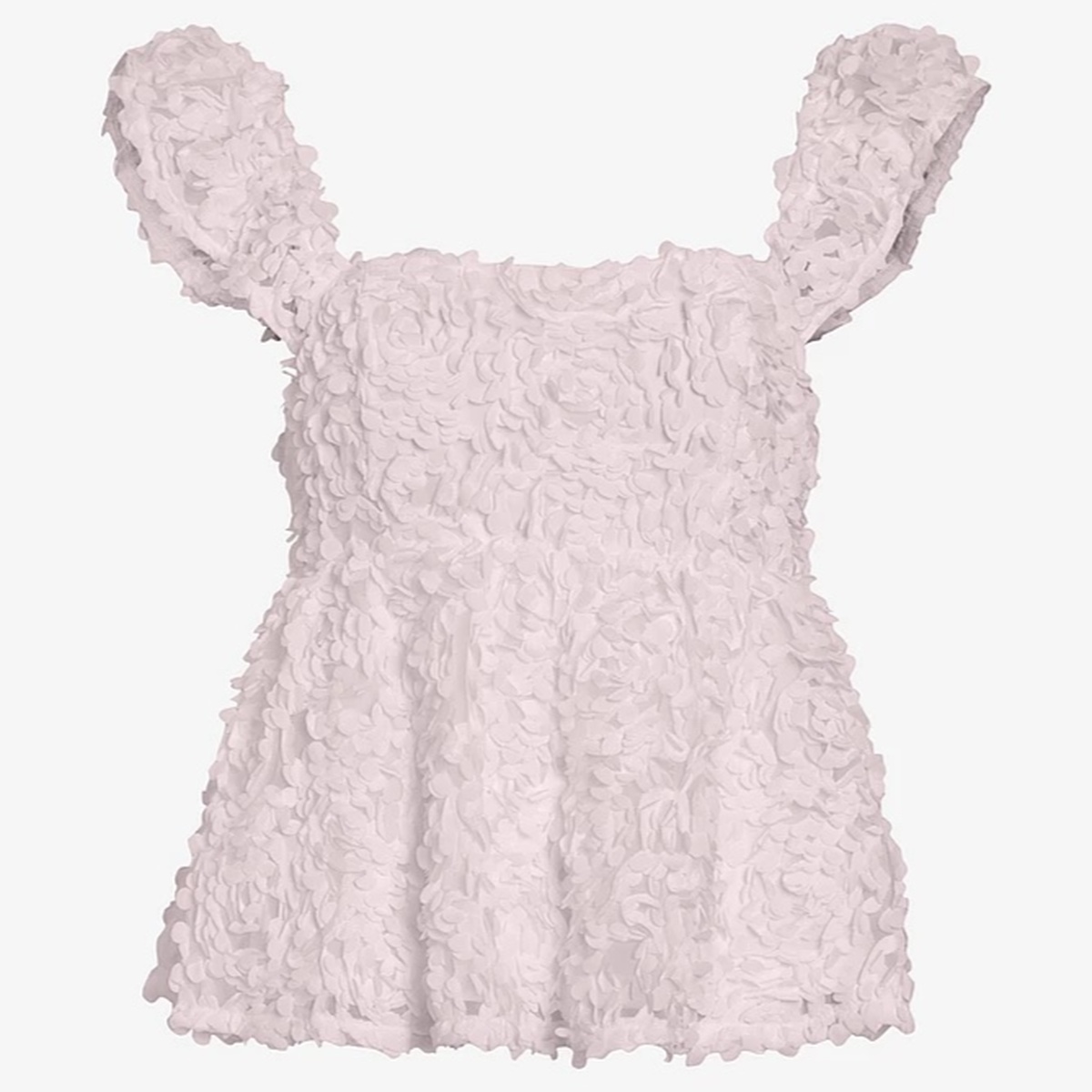 Supersøt topp med små rosetter over hele. Lekker cut foran, og strikk bak i ryggen for perfekt passform.