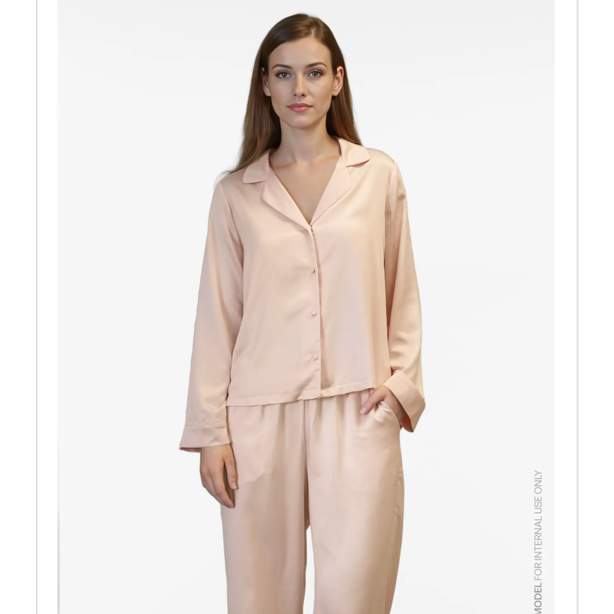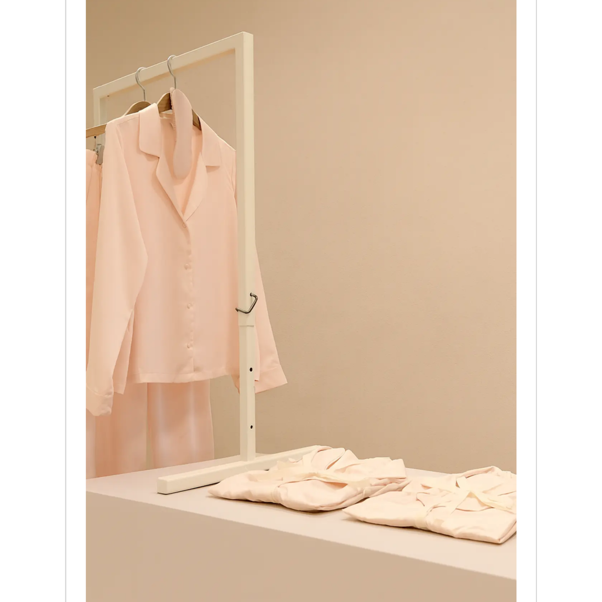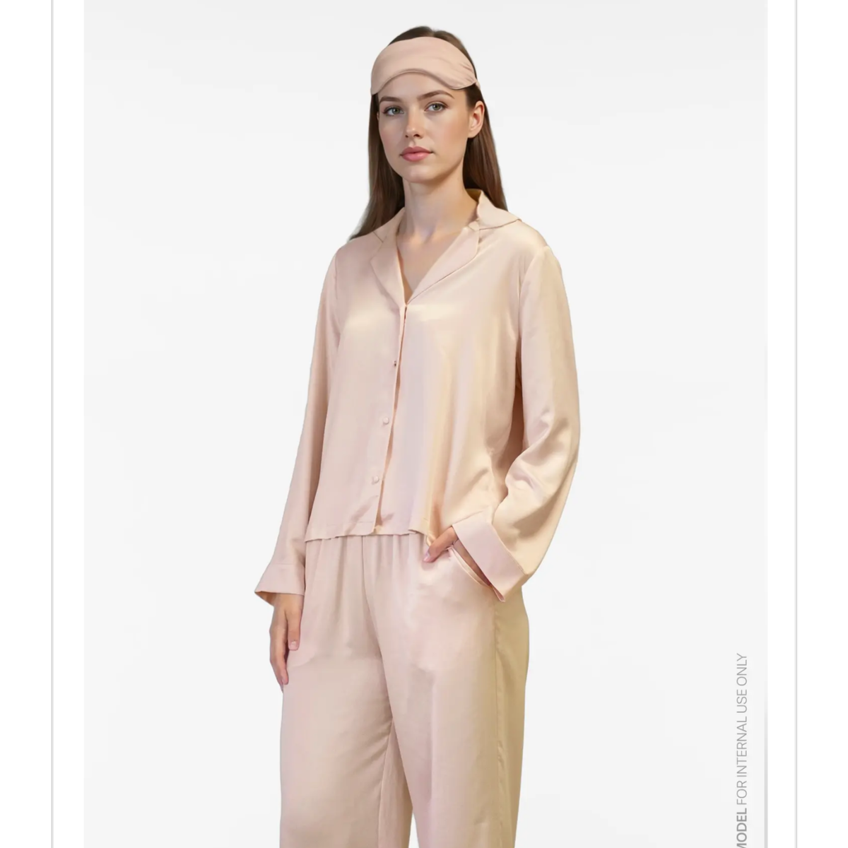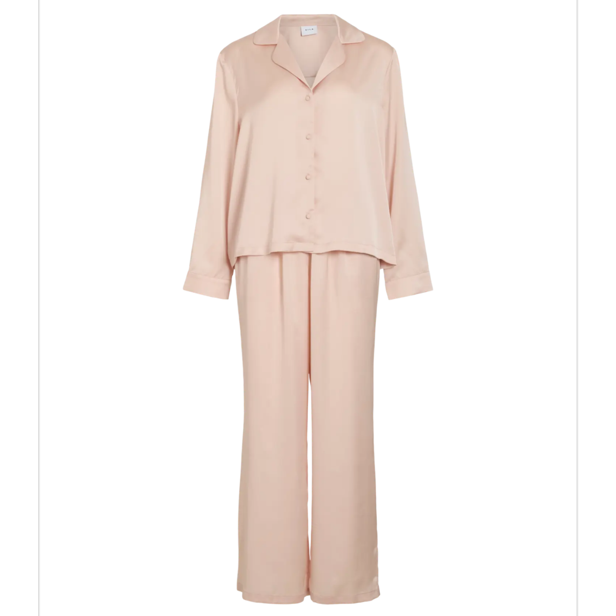 Silkepysjamas og sovemaske i den vakreste pudderrosa farge.