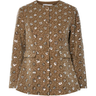 Små blomster lager av paljetter og lekre knapper ton i ton.