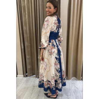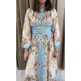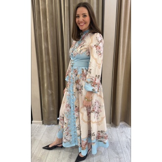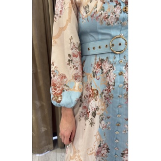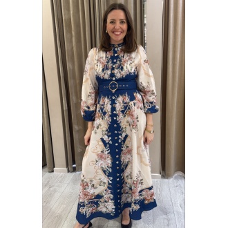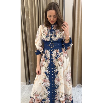 Lang kjole med vakre unike knapper hele veien i front, glidelås i ryggen.